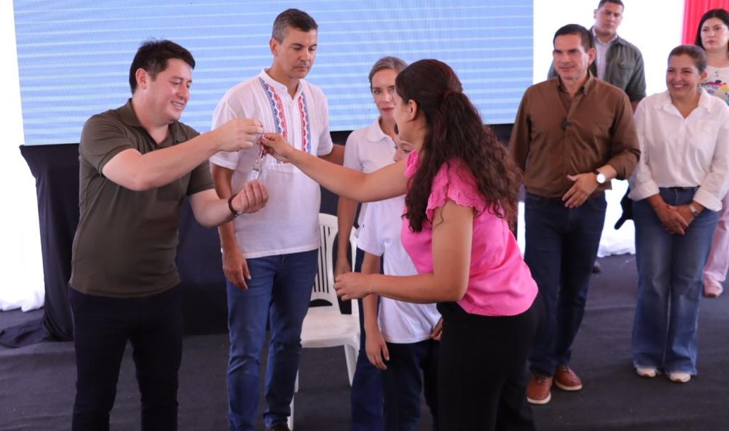 El presidente Santiago Peña encabezó la entrega de nuevas soluciones habitacionales destinadas a familias campesinas e indígenas del departamento, en el marco de la política nacional orientada a reducir el déficit de viviendas y mejorar la calidad de vida.